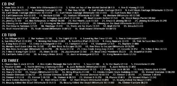 The ultimate recording sessins from KING KONG (2005) on triple discs! Contains 104 tracks, 226 mins total. CD-R.