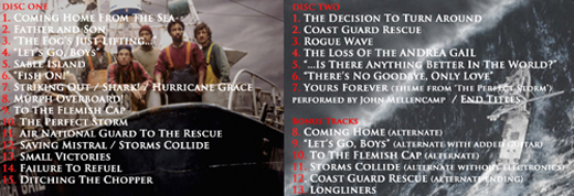 Complete original soundtrack from THE PERFECT STORM music by James Horner. Contains 145 mins of music on two discs. CD-R.