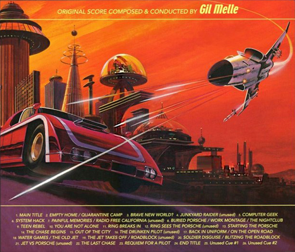 01. Main Titles 02. Empty Home/Quarantine Camp 03. Brave New World? 04. Junkyard Raider (unused) 05. The Computer Geek 06. System Hack 07. Painful Memories/Radio Free California (unused) 08. Buried Porsche/Work Montage/Nightclub 09. Teen Rebel 10. You Are Not Alone 11. Ring Breaks In 12. Ring Sees The Porsche (unused) 13. Starting The Porsche 14. The Chase Begins 15. Out Of The City 16. Drunken Pilot (unused) 17. In Uniform/The Open Road 18. Water Games/The Old Jet 19. The Jet Takes Off/Roadblock (unused) 20. Soldier Disguise 21. Blitzing The Roadblock 22. Jet vs Porsche (unused) 23. The Last Chase 24. Requiem For A Pilot 25. End Title