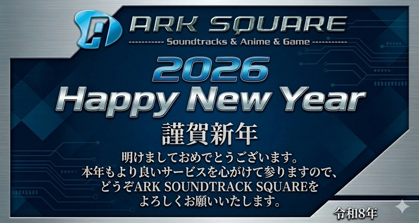 明けましておめでとうございます。 日頃、ARK SOUNDTRACK SQUAREをご利用いただきありがとうございます。おかげさまで今年で26周年を迎えました! これからもより良いサービスを心がけて参りますので、どうぞARK SOUNDTRACK SQUAREをよろしくお願いいたします。