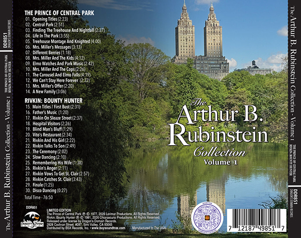 Dragon's Domain Records presents THE ARTHUR B. RUBINSTEIN COLLECTION, VOLUME 1, featuring music from two original scores from the composer's extensive filmography, THE PRINCE OF CENTRAL PARK and RIVKIN: BOUNTY HUNTER.