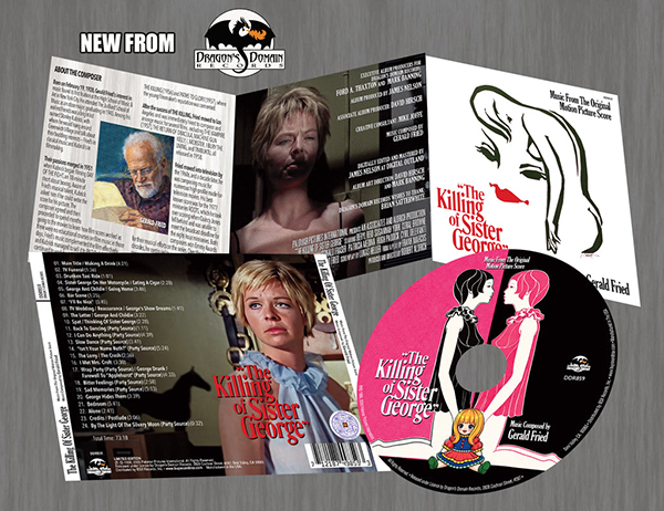 Dragon's Domain Records presents the world premiere release of THE KILLING OF SISTER GEORGE, featuring music composed by Gerald Fried. The music has been mastered by James Nelson at Digital Outland and the liner notes have been written by Scott Davis.