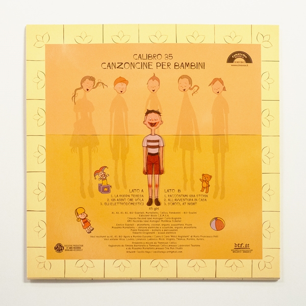 Exclusive 6-track LP featuring brand-new compositions by cinematic jazz-funk masters Calibro 35, blending their trademark sound with nursery rhymes sung by a real children's choir.