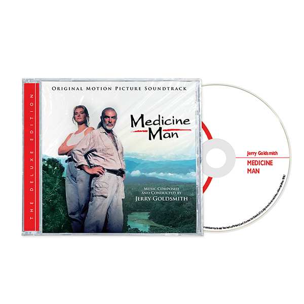 Medicine Man was released as a 14-track, 50-minute CD by Varese Sarabande in 1992. This Deluxe Edition adds 13 minutes of previously unreleased cues plus an alternate mix of the opening "Rae’s Arrival." The new liner notes are by Tim Greiving, who can neither confirm nor deny that Sean Connery’s ponytail in the film was inspired by Goldsmith’s hair.